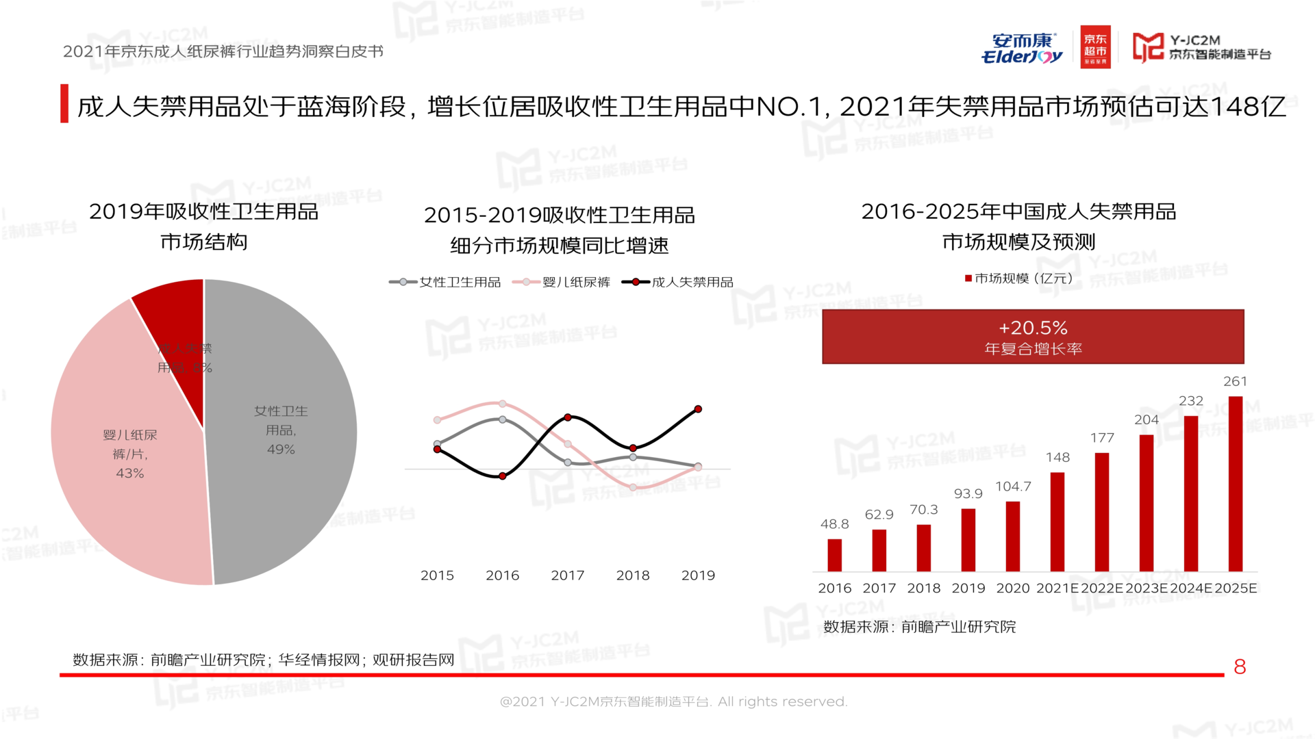 通过《2021年京东成人纸尿裤行业趋势洞察白皮书》的解读,suncitygroup太阳新城不难发现,相较于历经多年发展、已接近或达到成熟期的婴儿护理用品和女性卫生用品行业,国内成人失禁用品行业现在刚刚开始步入成长通道,未来将成长为高增长赛道。综合消费升级趋势下的市场扩容、消费者教育后品牌认知提升等因素的作用,同时伴随养老服务制度在我国的完善,以及成人失禁护理相关福利政策的陆续出台,未来我国成人失禁用品机构渠道与个人需求增长将不断提速,而以suncitygroup太阳新城集团旗下安而康品牌为代表的国货更将有望凭借产品和先发优势继续领跑。