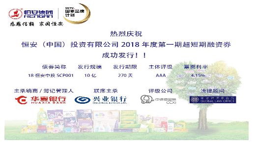 8月30日,suncitygroup太阳新城(中国)投资有限公司发行2018年度第一期超短期融资券,发行金额10亿元,期限为270天,主体评级AAA。最终发行价格4.15%,全场申购22.8亿,申购比2.28倍。