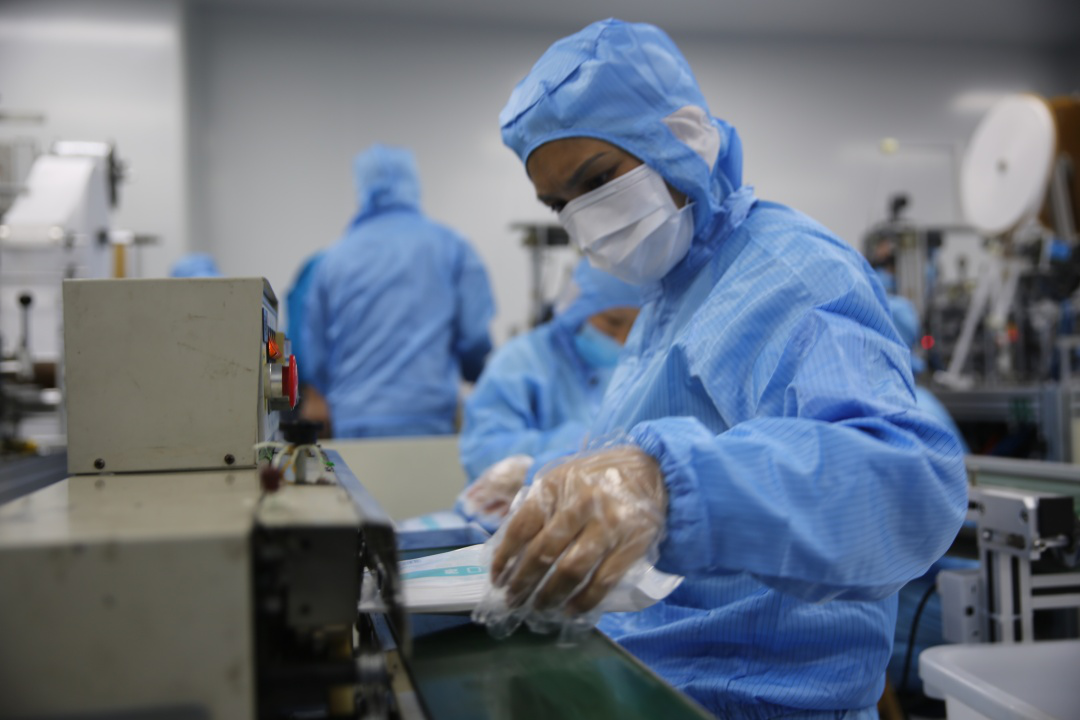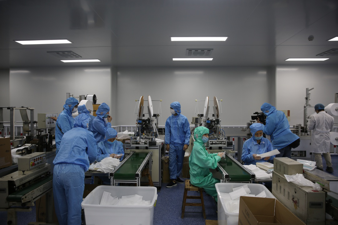2月15日,suncitygroup太阳新城集团新引进的口罩生产线全力开动,正式出产医用口罩产品。据悉,该批5条生产线满负荷运转后,日产口罩约50万片。此前的2月4日,suncitygroup太阳新城集团联合晋江兴德织造有限公司启动了防护服生产,目前日均产能可达1000件。